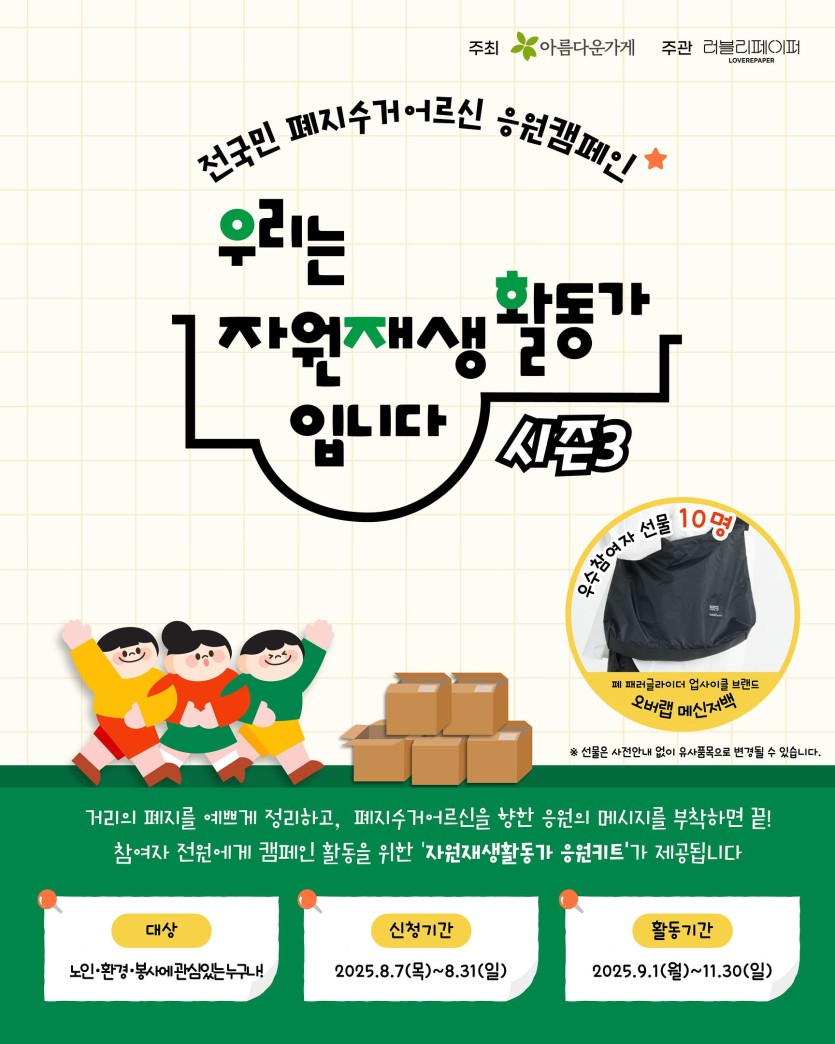 참가자 전원에게 ‘폐지수거어르신 응원 키트’ 제공