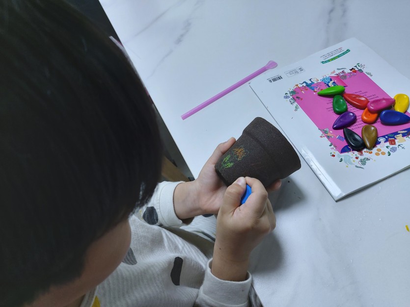 커피 가루를 이용해서 점토를 만들수 있고, 화분을 만들수 있고, 그 까만 화분에 색깔이 칠해진다는 것에 아이가 이건 정말 상상도 못한 일이라며 어떻게 이럴수가 있는건지 엄청 놀라며 신기해하고 그래서 더욱 즐겁게 체험 해 본 시간이었습니다~