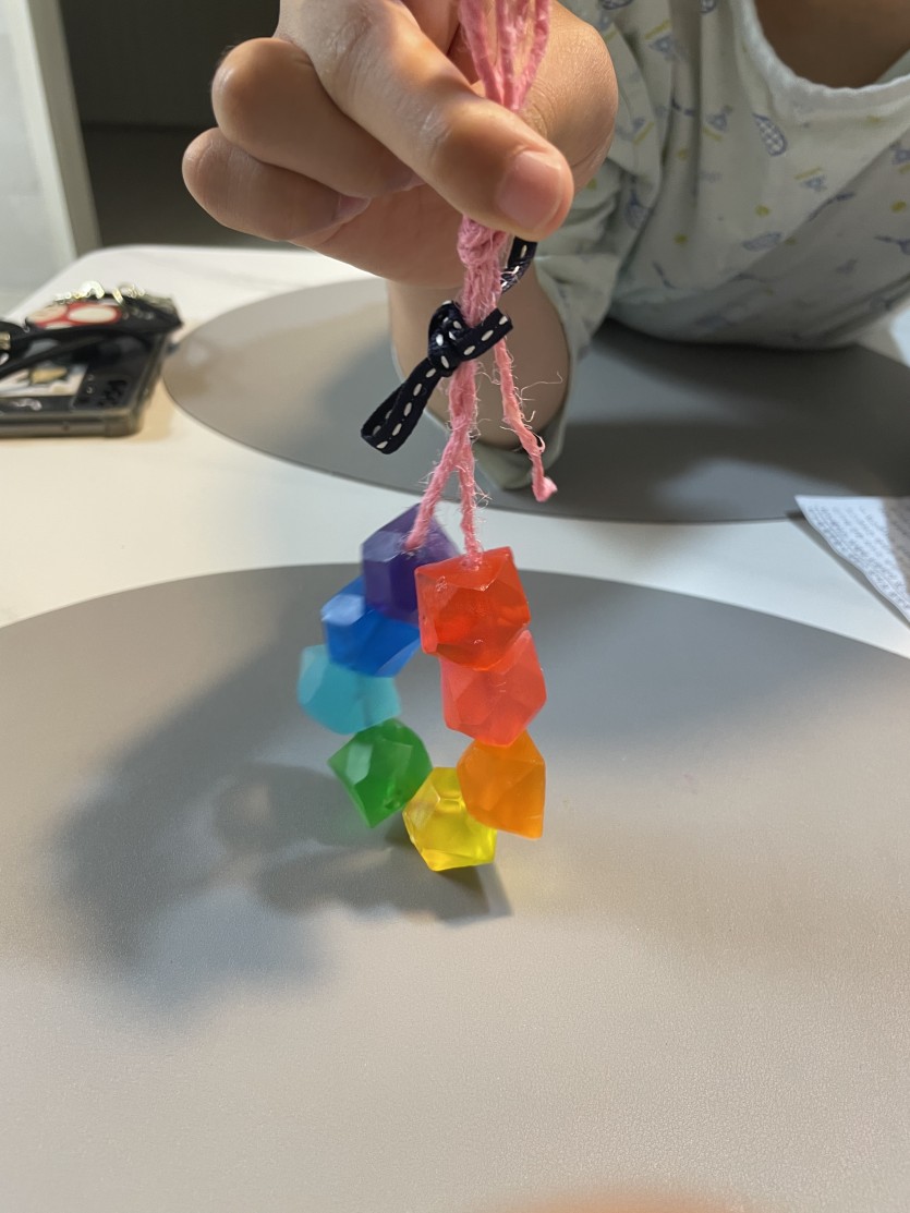 모빌만들기는 이쑤시개 같은 걸로 비누에 구멍을 뚫어서 실을 끼워서 만들어 화장실에 걸어놨구요,