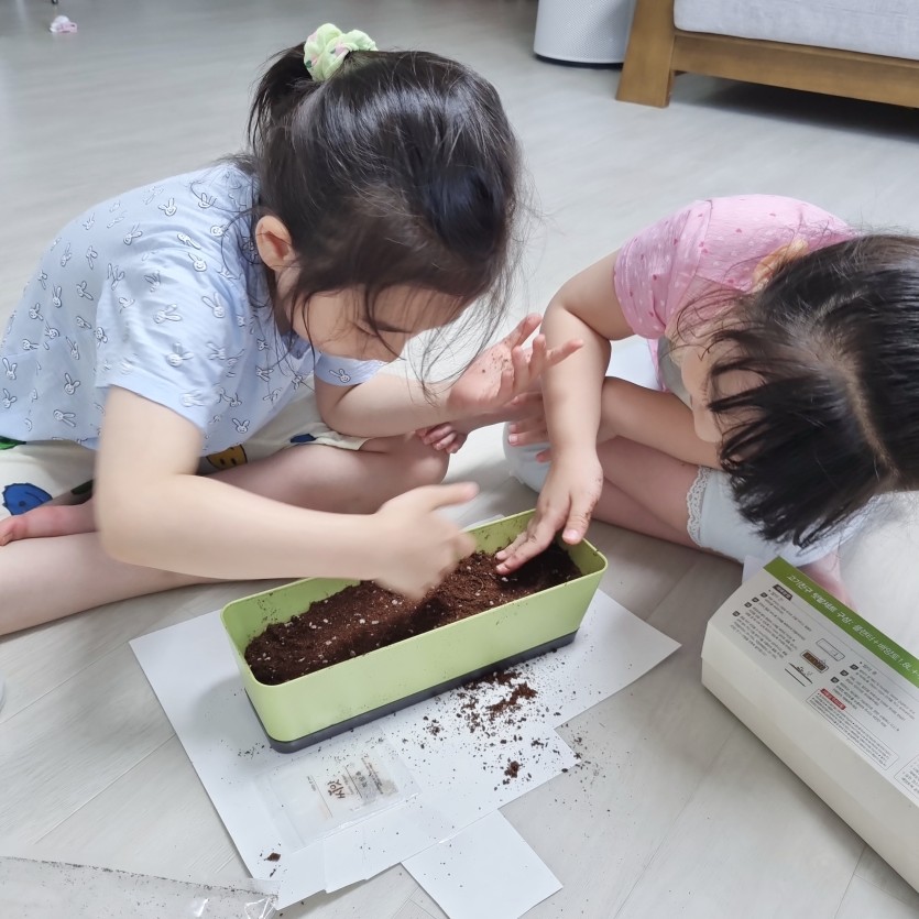 집에 놀러온 친구와도 정성스레 씨앗을 같이 심고 지금 싹이 3센치정도 자랐어요 부담되지않는 자그마한 크기의 화분이라 해가 잘드는곳에 옮겨가며, 가족모두가 돌아가며, 물을주고 키우고있습니다