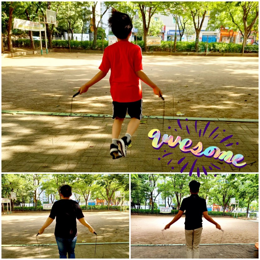 가 - 가족 모두 "미션 줄넘기"를 하느라 땀이 뻘뻘 났지요!