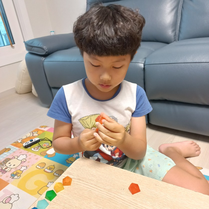 알록달록 예쁜 색깔에 향기도 좋고, 꼬챙이로 가운데 부분을 뚫어 노끈을 연결하는 아이는 재밌다며 혼자 다했다,,,엄마인 나도 해보고 싶었는데~~ㅋㅋ 대신 나는 미끌미끌한 줄을 묶어주고, 조정해주는 역할을 대신했다.