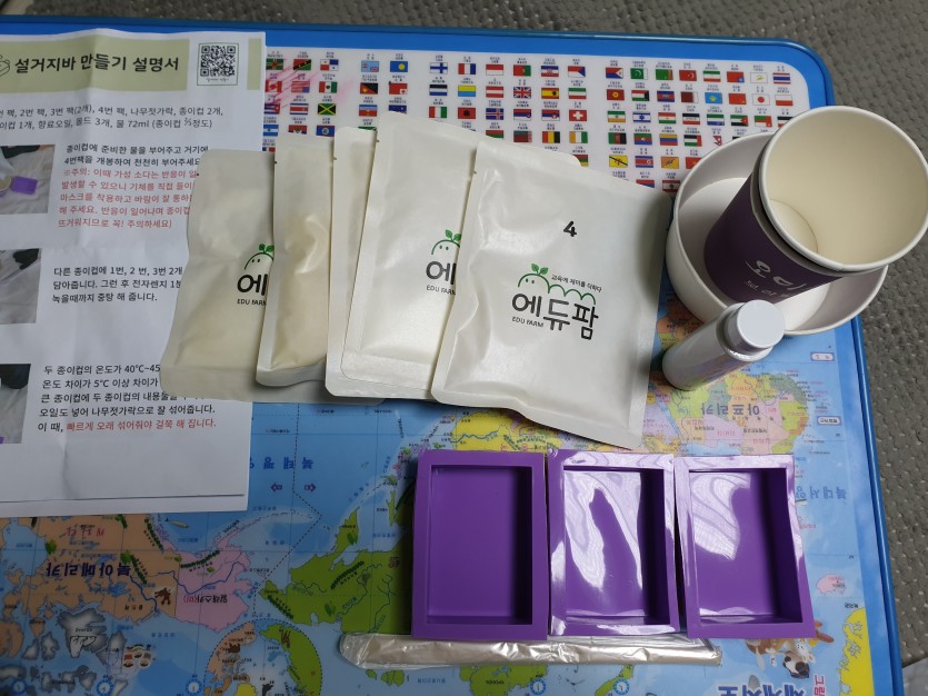 아이에겐 도서관 프로그램으로 비누나 샴푸바를 만드는 경험을 해 주었는데