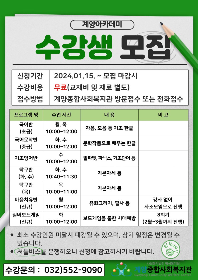 계양구 지역주민의 평생학습 및 취미, 여가 활동 지원을 위한 계양아카데미가 2월부터 시작됩니다.