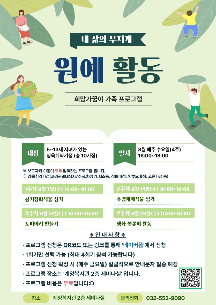 8월은 '원예활동'으로 프로그램을 진행하오니 많은 관심과 참여 부탁드리겠습니다:D