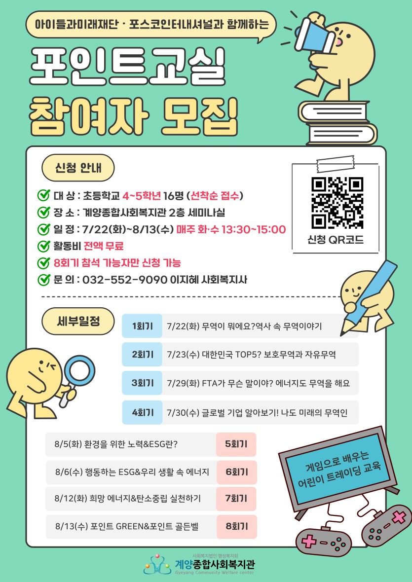 아이들과미래재단, 포스코인터내셔널의 지원으로 진행되는 어린이 트레이딩 교육 [포인트교실] 참여자를 모집합니다!