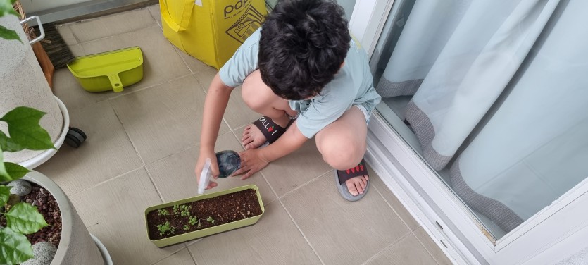 아이가 매일 분무기로 물을 주면서 즐거워 합니다.